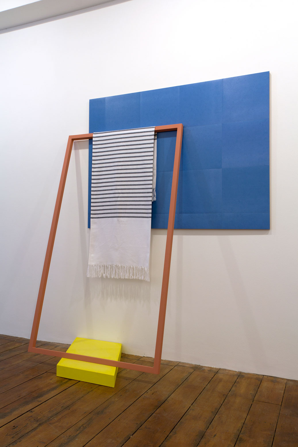 Plywood, vinyl floor tiles, gesso on Jelutong, distemper, plaster, watercolour, Hammam towel.