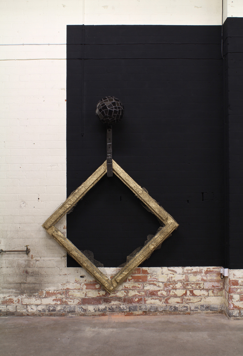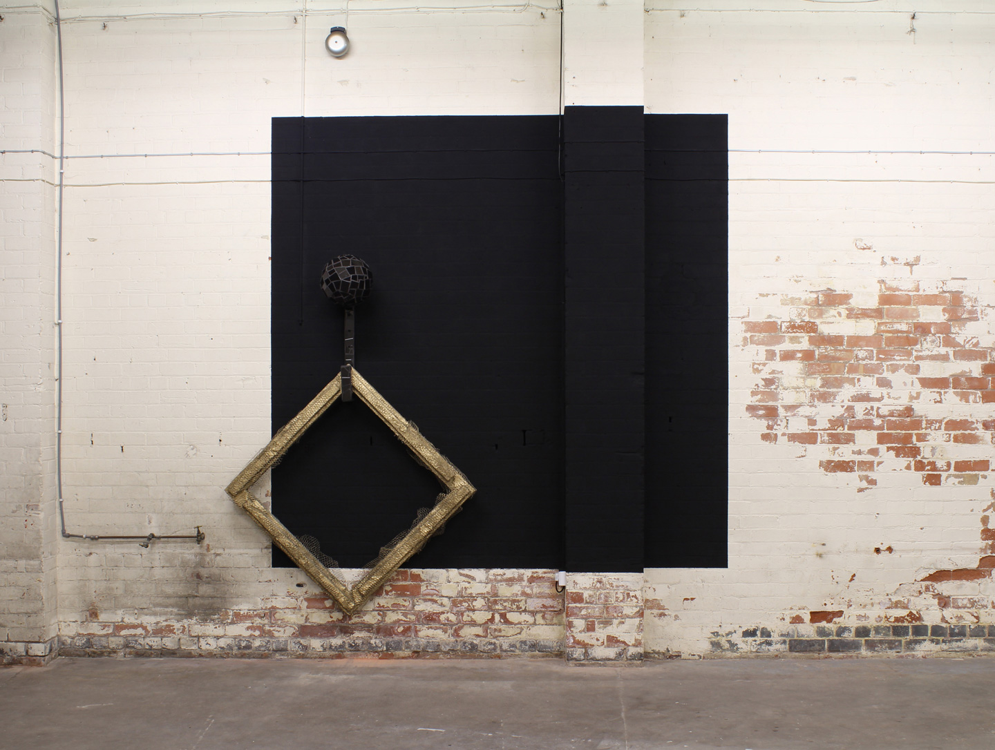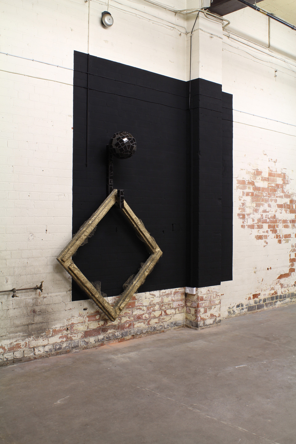 Super-saturated paint, polystyrene, Jesmonite, ceramic tiles, coloured grout, wood, wire mesh, cement, spray-paint.