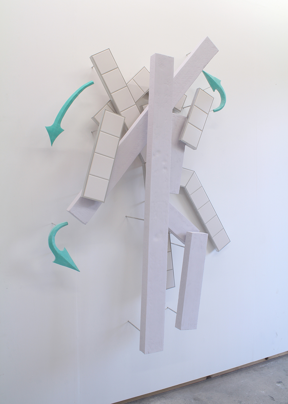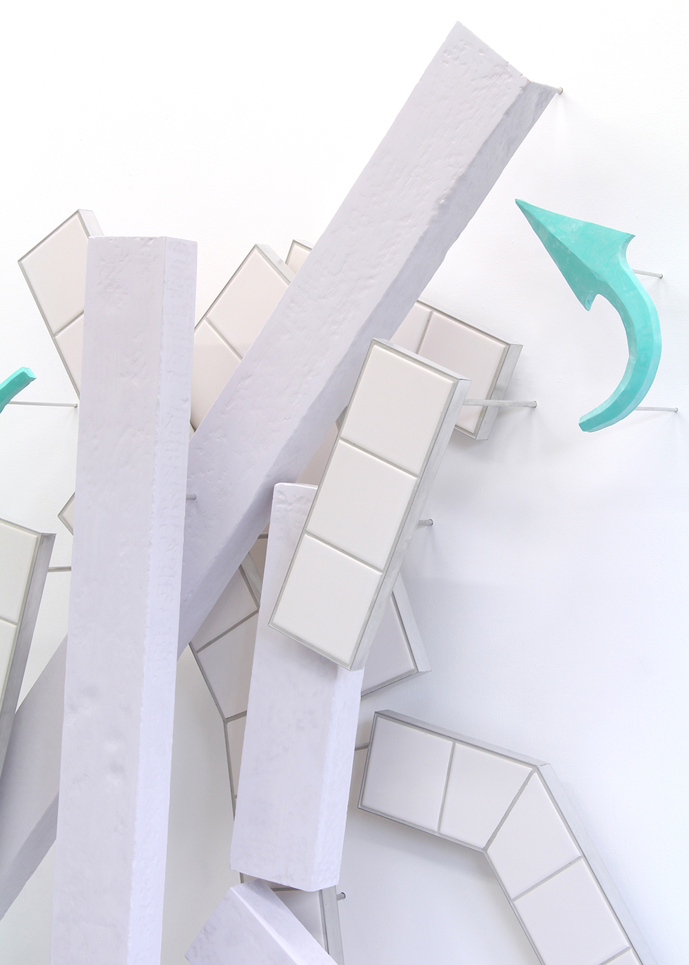 Jesmonite, MDF, ceramic tiles, grout and aluminium.