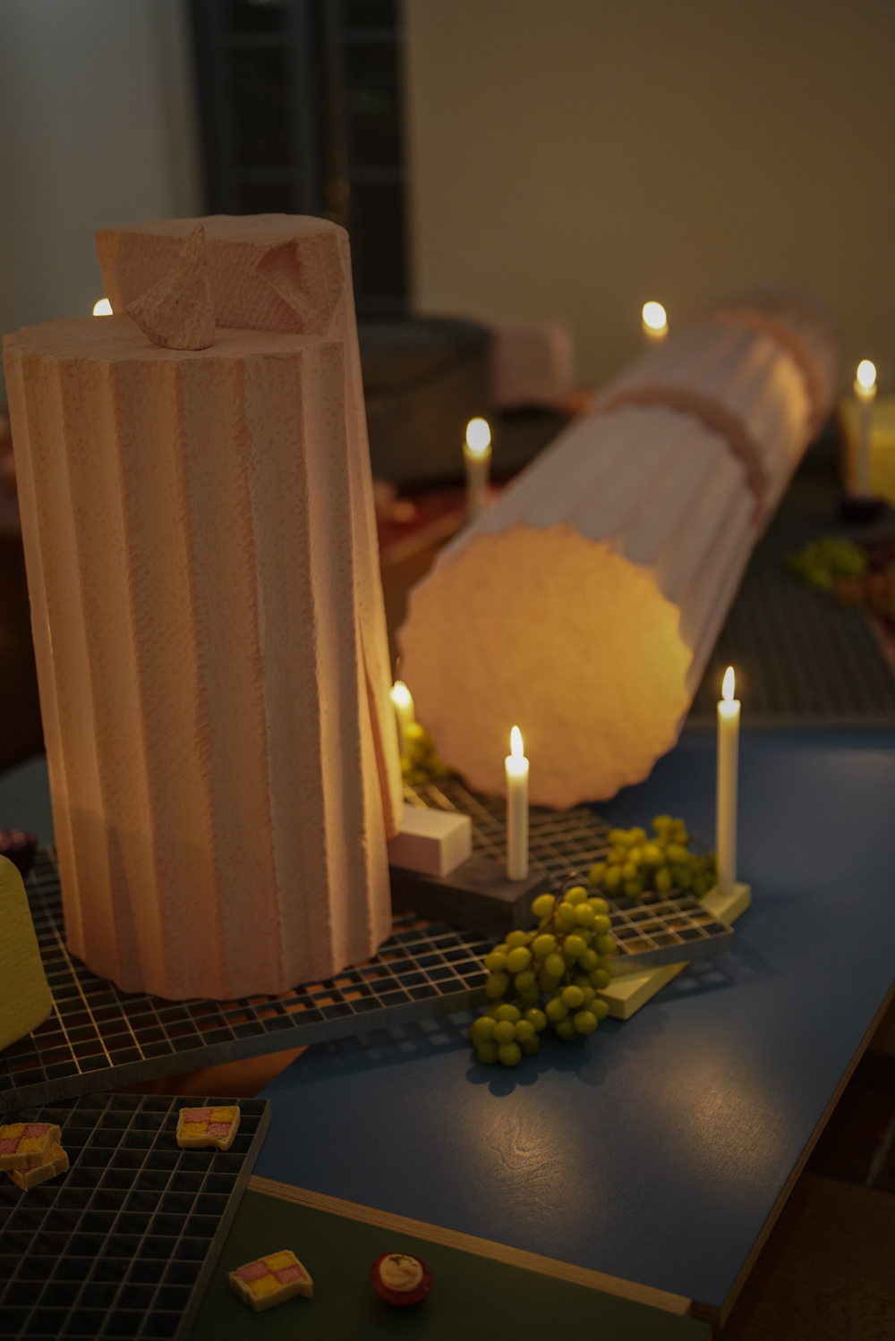 Food was made by artist Francesca Anfossi, its placement on the table drawing inspiration from Heraclitus’ Unswept Floor mosaic.